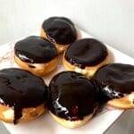 Rich doughnuts filled with luscious vanilla custard, topped with a layer of chocolate ganache.